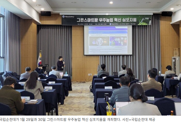 [대학저널 온종림 기자] 국립순천대학교가 지난 1월 29일과 30일 전남 고흥군 고흥 썬밸리 리조트에서 「그린스마트팜 우주농업 혁신 심포지움」을 개최했다.